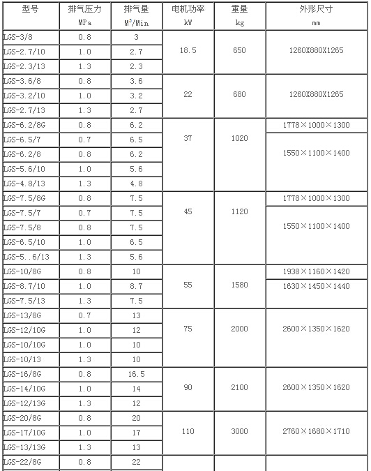 電動(dòng)水冷固定式螺桿空氣壓縮機(jī)技術(shù)參數(shù) |