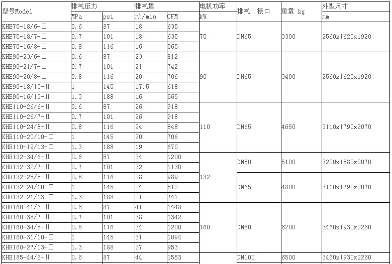 國內(nèi)首創(chuàng),兩級壓縮常壓螺桿空氣壓縮機。 排氣壓力:0.6-1.3Mpa,排氣量:16.00 -70.00m3/min,電機功率范圍:75-355 kW